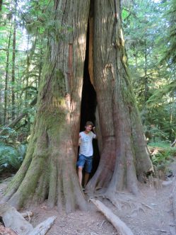 Den nächsten Tag arbeiteten wir uns Richtung Tofino hoch, und nahmen einige Attraktionen mit, die sowohl der Reiseführer als auch Reg himself vorgeschlagen hatten: einen Leuchtturm, den Totempfahl Walk in Duncan, ein erstes erfrischendes Bad Cameron Lake und „Cathedral Grove“, einen kleinen Rundgang zwischen ziemlich großen und alten Bäumen.