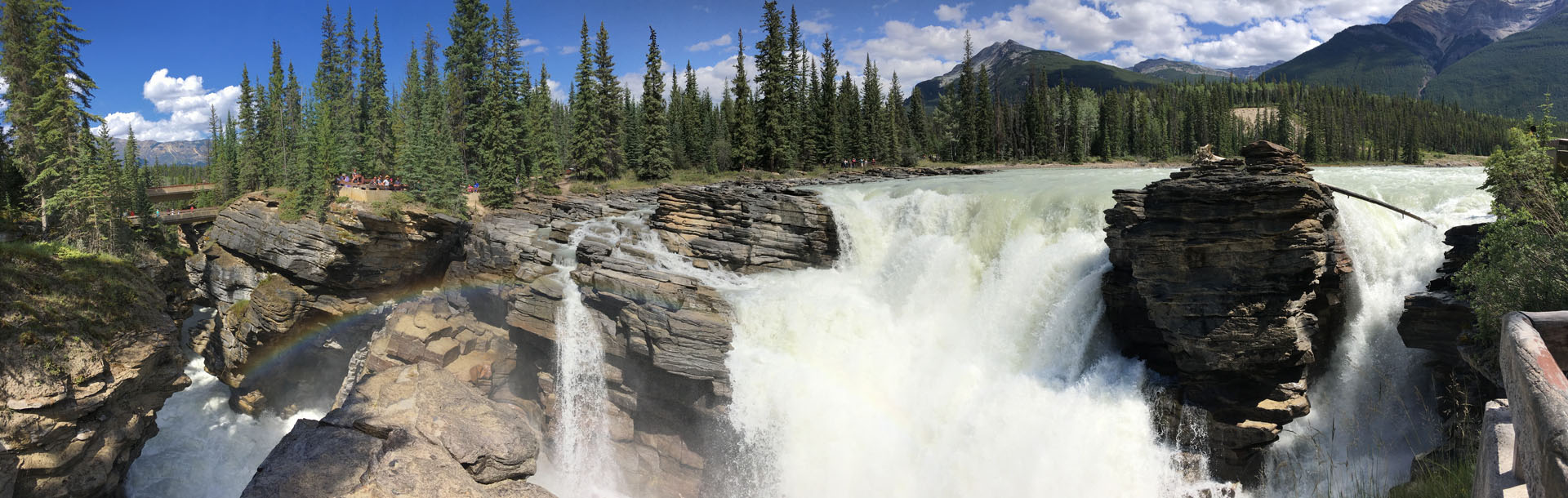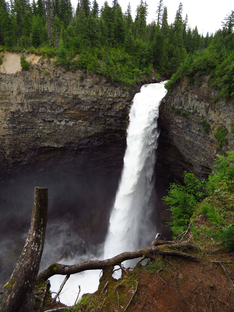 Eine dankbare Attraktion am Wegesrand sind immer wieder die zahllosen Wasserfälle, die oft nach einem kurzen Fußweg vom gut ausgeschilderten, und selten einsamen Parkplatz zu erreichen sind. Wir haben in den drei Wochen einige gesehen (und zügig den gleichnamigen TLC-Song als Ohrwurm etabliert), einer verdient jedoch, dass ich ihn hier explizit erwähne: Die Helmcken Falls im Wells Grey Provicial Park. Am besten zu betrachten von einem Lookout Point unmittelbar am Straßenrand, allerdings gibt es auch einen ‚Hike‘ der durch den Wald zum Wasserfall selber führt. Hinweisschilder zum Thema ‚steep Dropoff‘ sollten sich als durchaus wahr beweisen, denn der Pfad führte entlang der Stelle, wo das Wasser in die Tiefe stürzte, und gab den Blick in geradezu atemberaubende Tiefe frei.