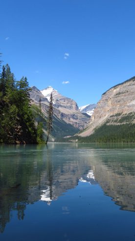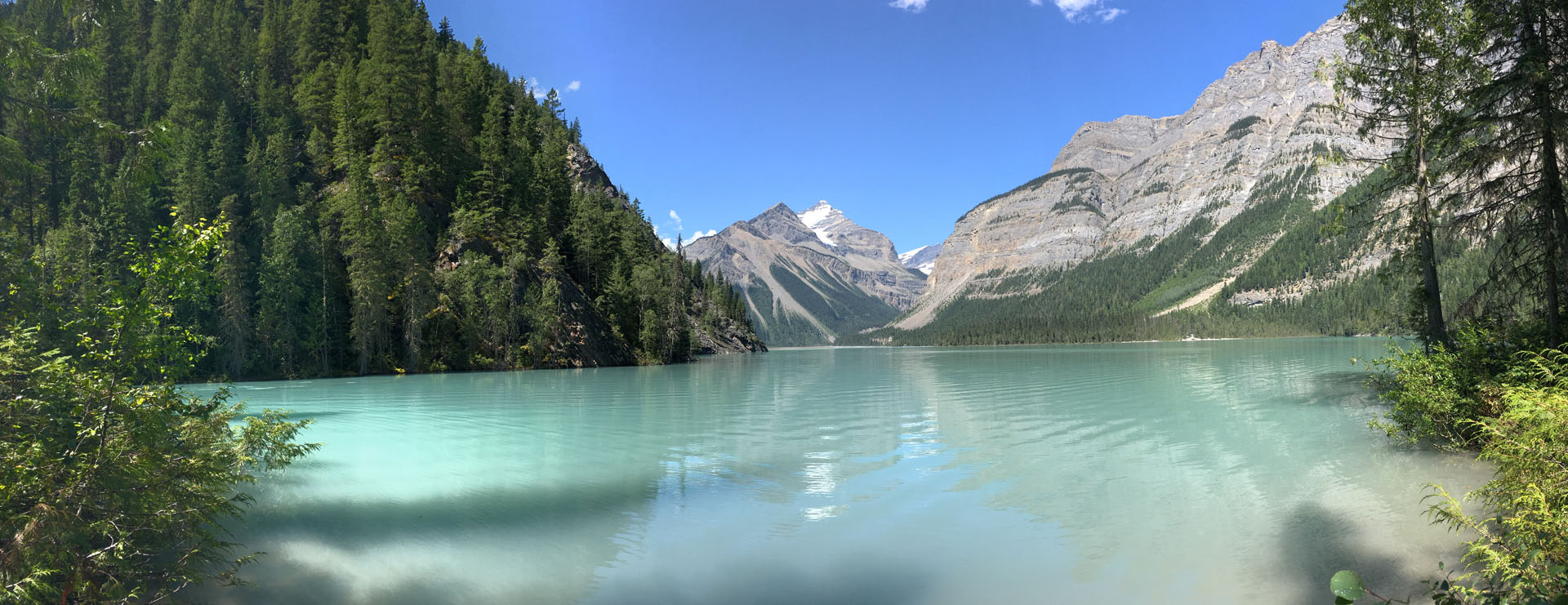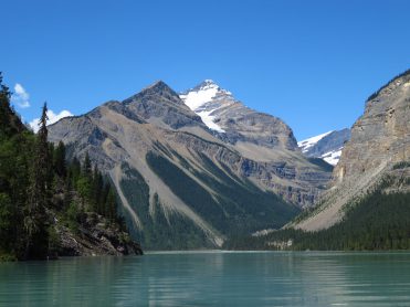 Ebenfalls typisch für die Region sind die schönen, blauen Bergseen. Den ersten, den Kinney Lake erwanderten wir im Mnt. Robson Provincial Park. Der herrlich kitschige blau-türkise Farbton des Wassers ist übrigens bedingt durch das Steinmehl, dass die Gletscher von den Felsen losmahlen.