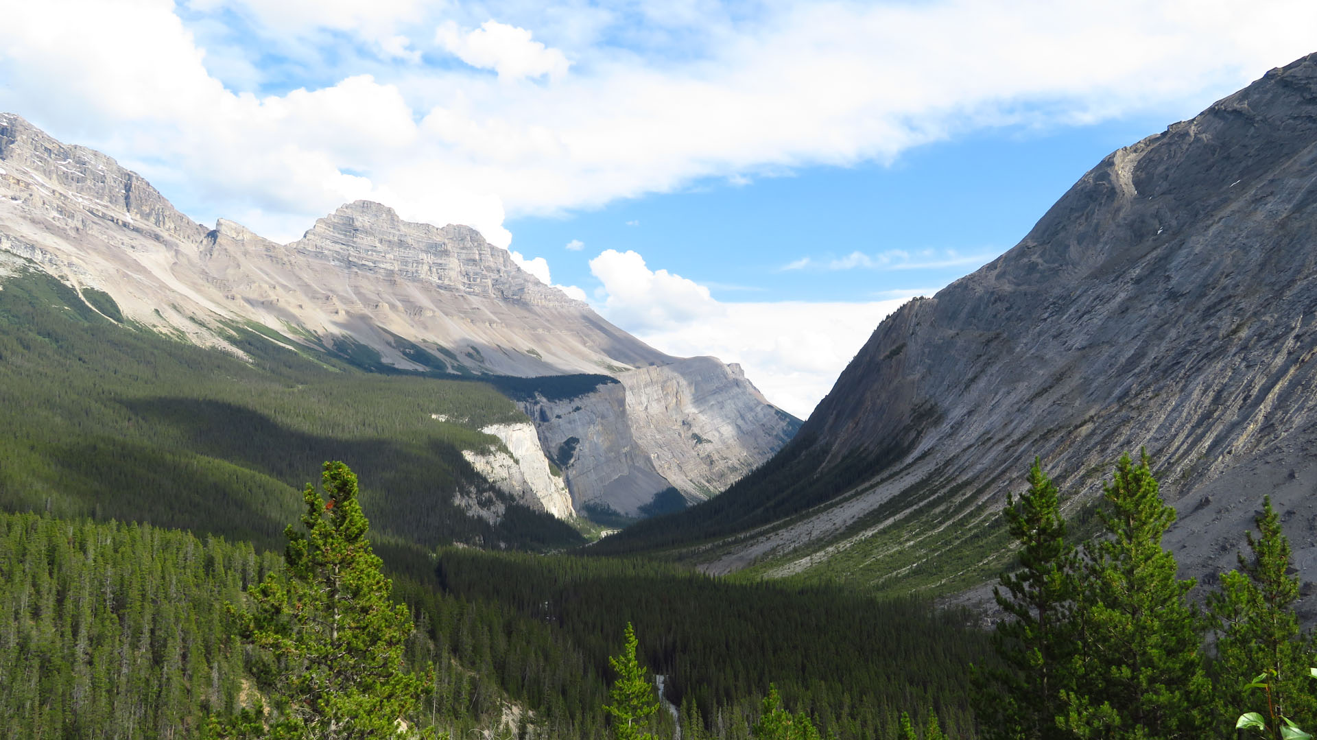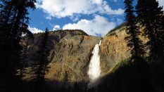 Doch der Yoho hatte noch mehr zu bieten: etwa die Takakkaw Falls im Abendlicht oder die berühmten Eisenbahn-Spiraltunnel, die dazu dienen, dass die Züge auf ihrem Weg durch die Berge Höhe machen können ohne dafür zu extreme Steigungen bewältigen zu müssen. Durch die geringere Steigung wird weniger Lokomotivenpower benötigt und die Züge können länger sein. Und sie sind ziemlich lang! So lang, dass man sehen kann, wie der Zug in den Tunnel reinfährt, eine Etage höher wieder rauskommt und schließlich unter dem Aussichtspunkt vorbeifährt, ohne dass der letzte Wagon schon im Tunnel ist. Auch für nicht-Eisenbahnfreaks ein interessantes Schauspiel!