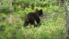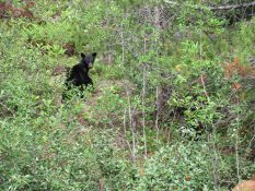 Von Jasper nach Banff führt der so genannte ‚Icefields Parkway‘, eine Straße, die aufgrund ihrer vielen Sehenswürdigkeiten am Wegesrand und der schönen Szenerie rundherum als eigenständige Attraktion firmiert. Wie der Name vermuten lässt, sieht man einige Gletscher, Seen und kalte Flüsschen und tatsächlich- von Dori innig herbeigesehnt- wir sahen auch Bären in freier Wildbahn! Wenn es auf der Straße plötzlich (scheinbar grundlos) Stau gibt, so ist dies meist ein sicheres Zeichen dafür, dass es am Wegesrand etwas zu sehen gibt. Geradezu panisch werden dann die Wohnmobile oft mitten auf der Straße geparkt und die Besatzung springt  – die Kamera schussbereit – suchend und witternd aus dem Wagen und läuft dem Vordermann hinterher, von dem Sie annimmt, dass er was gesehen hat. Die Parkranger patrouillieren die Straßen, um dann etwas Ordnung in die Situation zu bringen. Während wir die ersten paar Male zu spät waren, und man nur noch Bäume sah, hatten wir diesmal Glück: Eine Bärenmutter strich mit ihren beiden Jungen durchs Unterholz. Nicht wirklich weit weg von uns, aber wir passten meist auf, dass sich ein paar unbedarfte Japaner noch näher an den Tieren befanden- nur für alle Fälle…