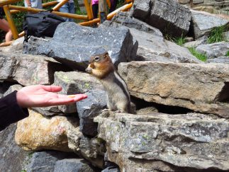 Einige Highlights der nächsten Tage waren u.a. Kanufahren auf dem Maligne Lake (der keineswegs so böse aussah, wie er sich anhört), der Maligne Canyon und eine Bergtour auf dem zugigen Whistler Summit nach (wiederum überteuerter) Seilbahnfahrt mit dem ‚Jasper Sky Tram‘. Außerdem gab es das erste erfolgreiche Wildtier-Watching: mehrere Elks (was leider keineswegs ein Elch sondern eher so eine Art Hirsch ist) grasten Seelenruhig am Seeufer.