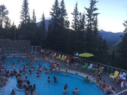 Das nette Touri-Örtchen Banff haben wir nur einmal aufgesucht, um die heißen Quellen zu besuchen. Schnell war klar, dass es sich nicht um ein naturnahes Erlebnis mit Felsengrotte handeln würde, sondern um eine Art Schwimmbad mit Aussicht über Banff. Die wurde unter anderem von den zahlreichen Japanern genossen, die dazu beitrugen, dass im Wasser regelrechtes Gedränge herrschte! Insgesamt hatte es wohl was von einer Poolparty… nur ohne Alkohol und Musik. Eine ambivalente Erfahrung- immerhin war das Wasser schön warm. Und gechlort.