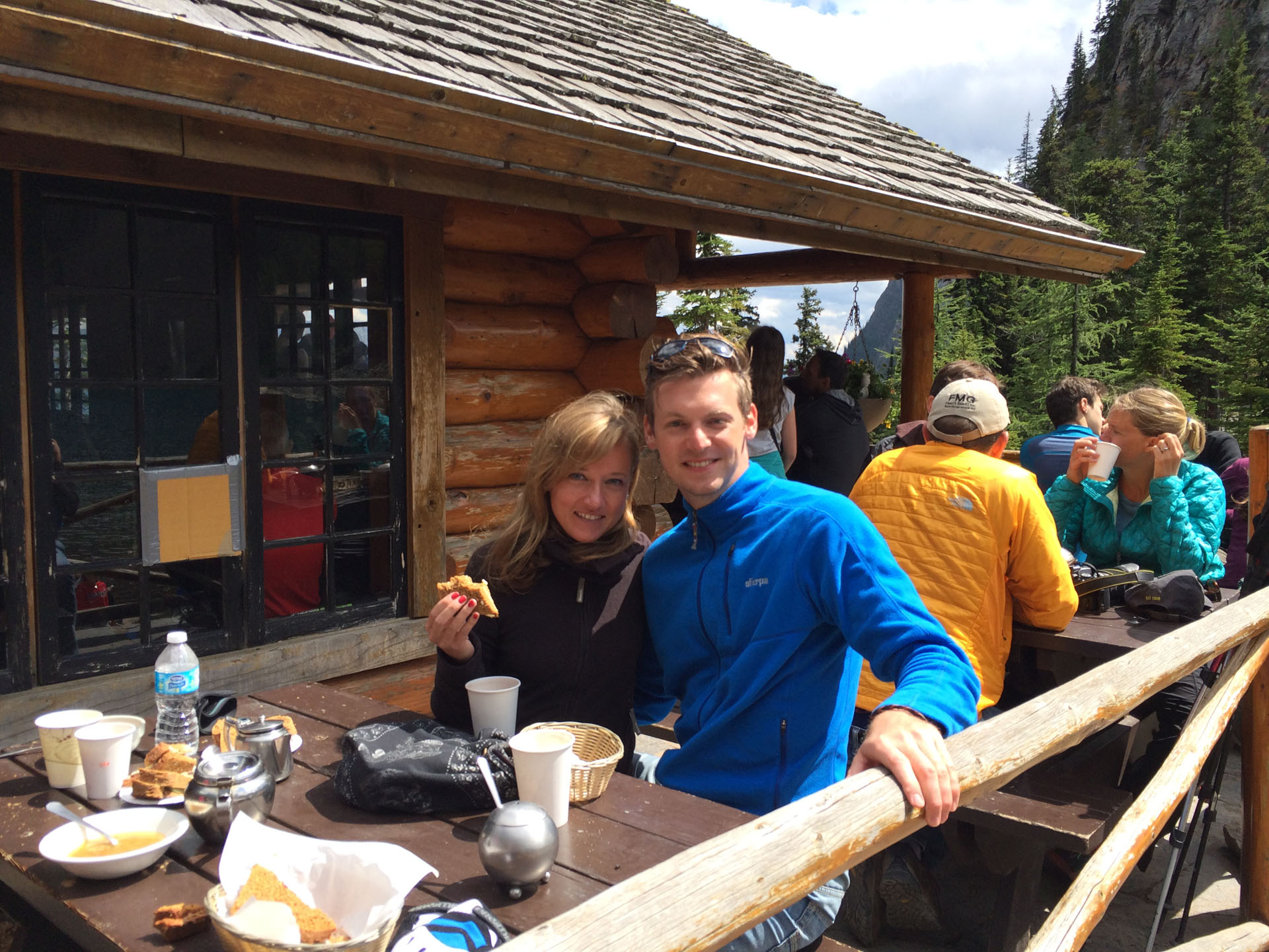 Der See war hübsch, erscheint im Vergleich zu Seen in der Nähe, wie dem Moraine Lake, jedoch etwas overrated. Eine kleine Wanderung den Berg hinauf führt zum Lake Agnes und zu ‚Agnes‘ Teahouse‘, was familiärer klingt als es war- vor allem wohl aufgrund der Masse der Leute, die die kleine Hütte stürmten und zeitgleich etwas zu essen haben wollten. Wir freilich auch, schließlich hat man nach so einem Aufstieg Hunger…!