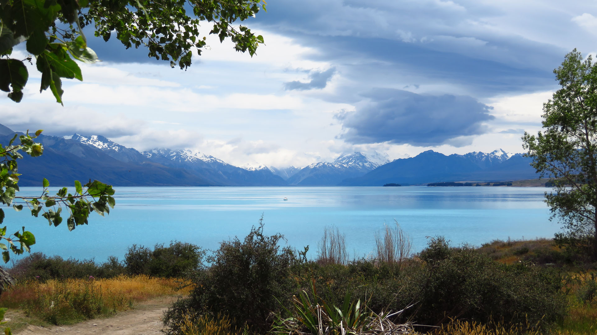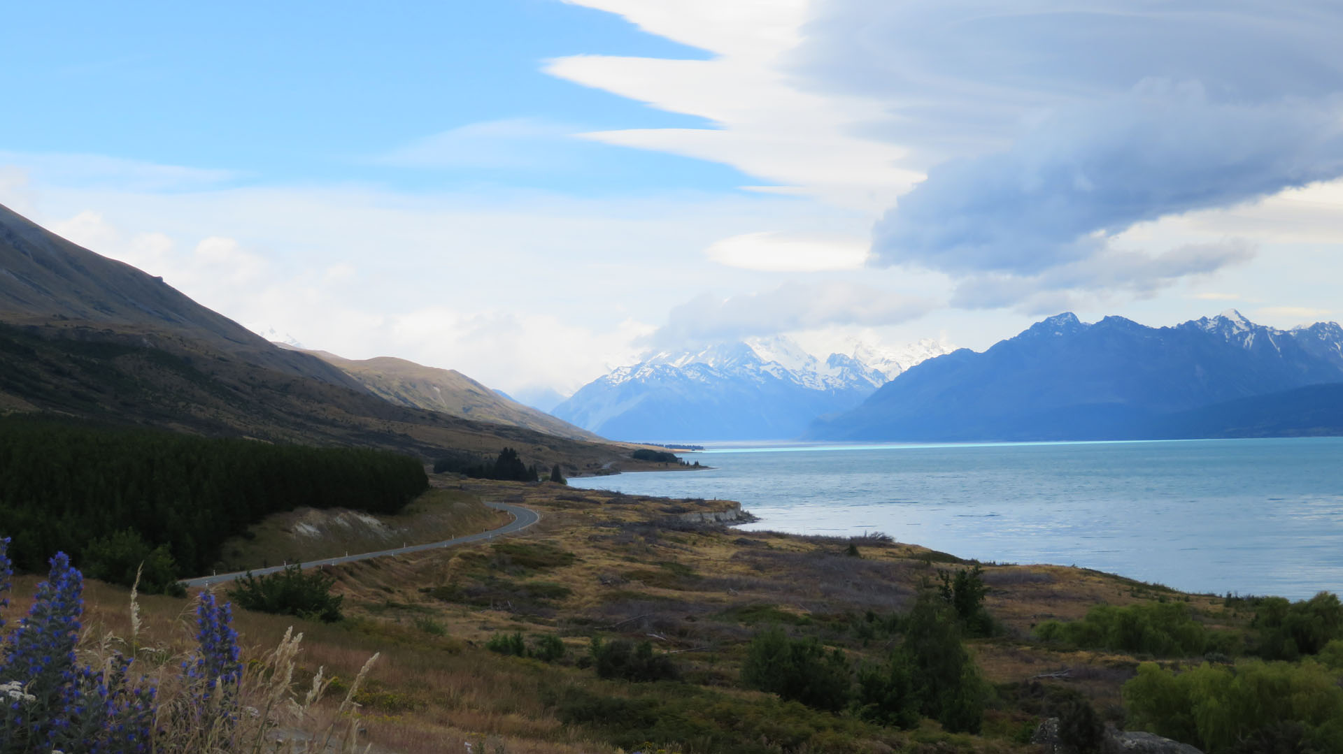 Und es wurde noch besser! Quasi gleich nebenan ist der Lake Pukaki, noch etwas länger gestreckt als Lake Tekapo, und mit atemberaubenden Alpenpanorama im Hintergrund- ja tatsächlich heißen die Berge hier auf der Südinsel ebenfalls „Alpen“.