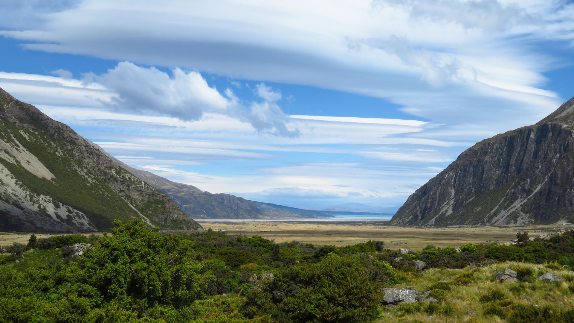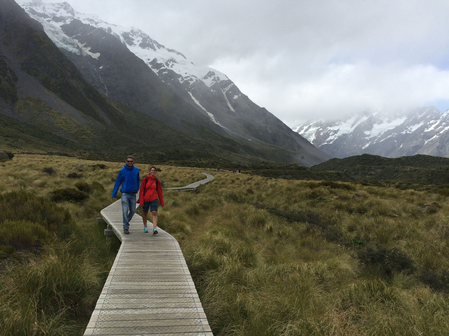 Ziel unseres Abstechers war allerdings der Mount Cook, beziehungsweise ein Gletschersee neben dem Berg, zu dem man über den so genannten „Hooker Valley Track“ läuft. Auch wenn wir viel Freude daran hatten, uns phantasievoll auszumalen, wie der Weg wohl zu seinem Namen gekommen sein mag, lautet die profane Erklärung: benannt sind Tal, Weg und Gletscher nach dem Botaniker William Jackson Hooker.