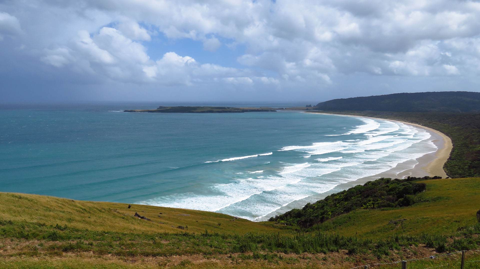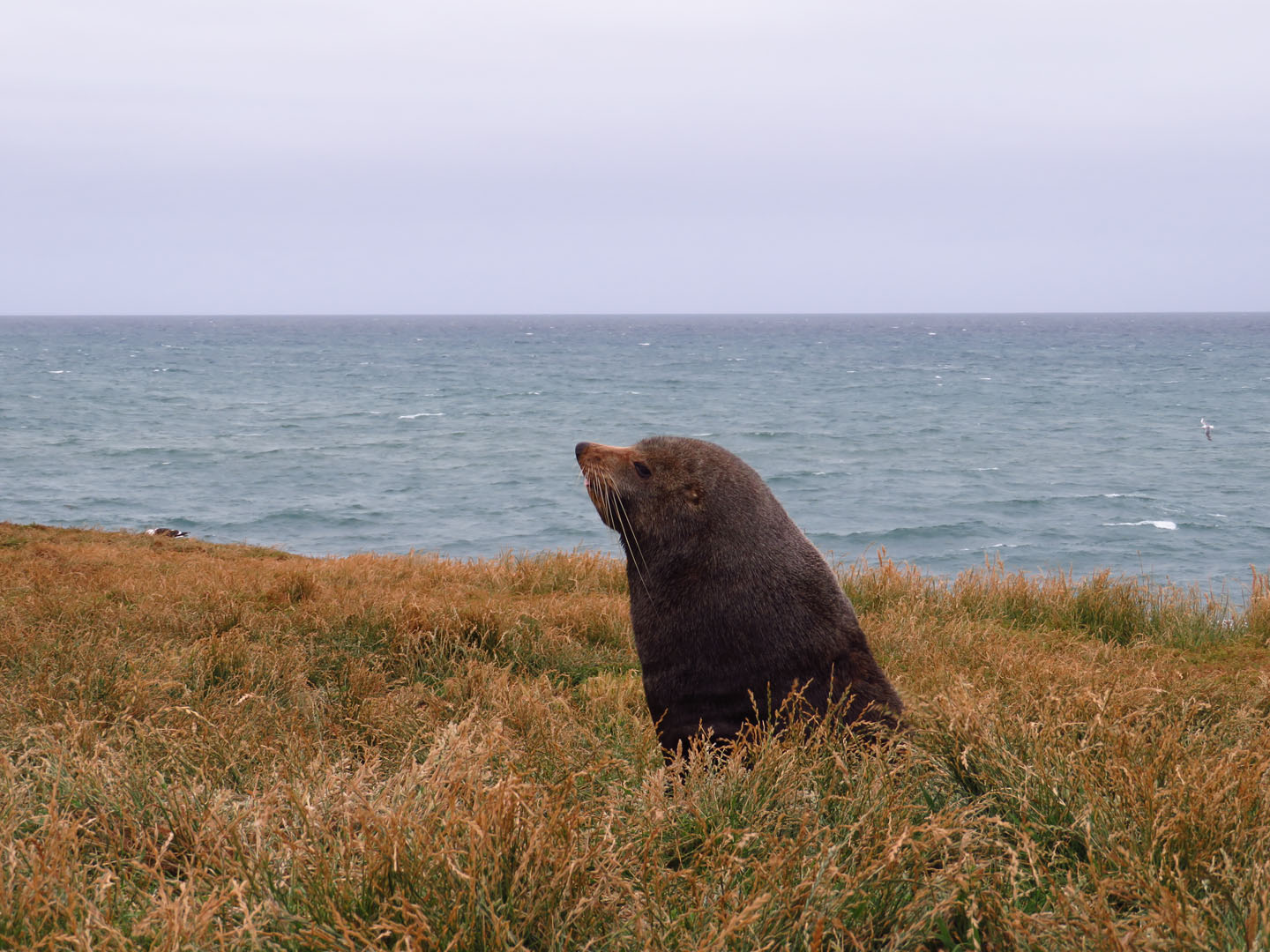 Nach diesem Abstecher ins Inland ging es nun zurück an die Ostküste. Die Berge zurücklassend gelangten wir in die Catlins, einen hügligen Landstrich an der Küste, in dem es immer wieder schöne Strände, Landzungen mit Leuchttürmen, Seehunde und manchmal auch Pinguine zu sehen gab: