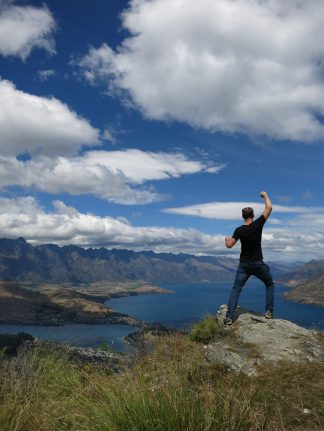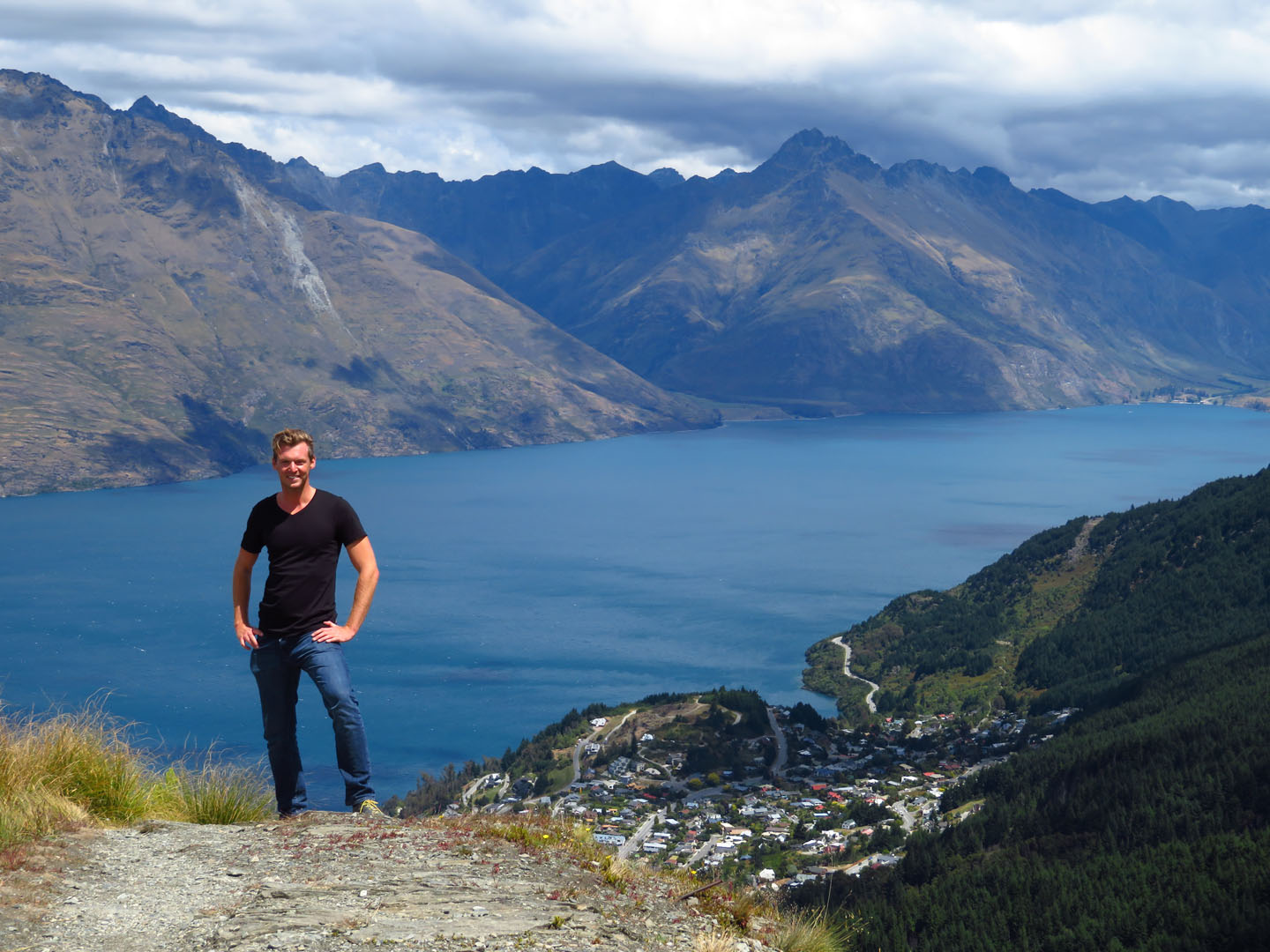 Abends gönnten wir uns mal ein Bierchen in der Stadt und waren am nächsten Tag schon auf dem Weg aus der Stadt, als wir uns klarmachten, dass soeben ein ausnehmend schöner Tag begann und wir heute Queenstown und Umgebung doch von einer hübscheren Seite als der trüb-grauen des Vortages kennenlernen könnten! Also gradewegs zurück zum Parkplatz der Gondelbahn und rauf auf den Hausberg! Von wegen! Die ganze Stadt war- einmal zum Leben erweckt – ein einziges Verkehrschaos! Der Parkplatz der Bahn gerammelt voll und unzählige Autos zogen wie wir konzentrische Kreise darum, in der Hoffnung endlich irgendwo den Wagen abstellen zu können. Sage und schreibe 45 min später fanden wir in den Außenbezirken der Stadt einen Platz und waren weitere 20 min später dann schließlich in der Gondel!