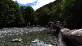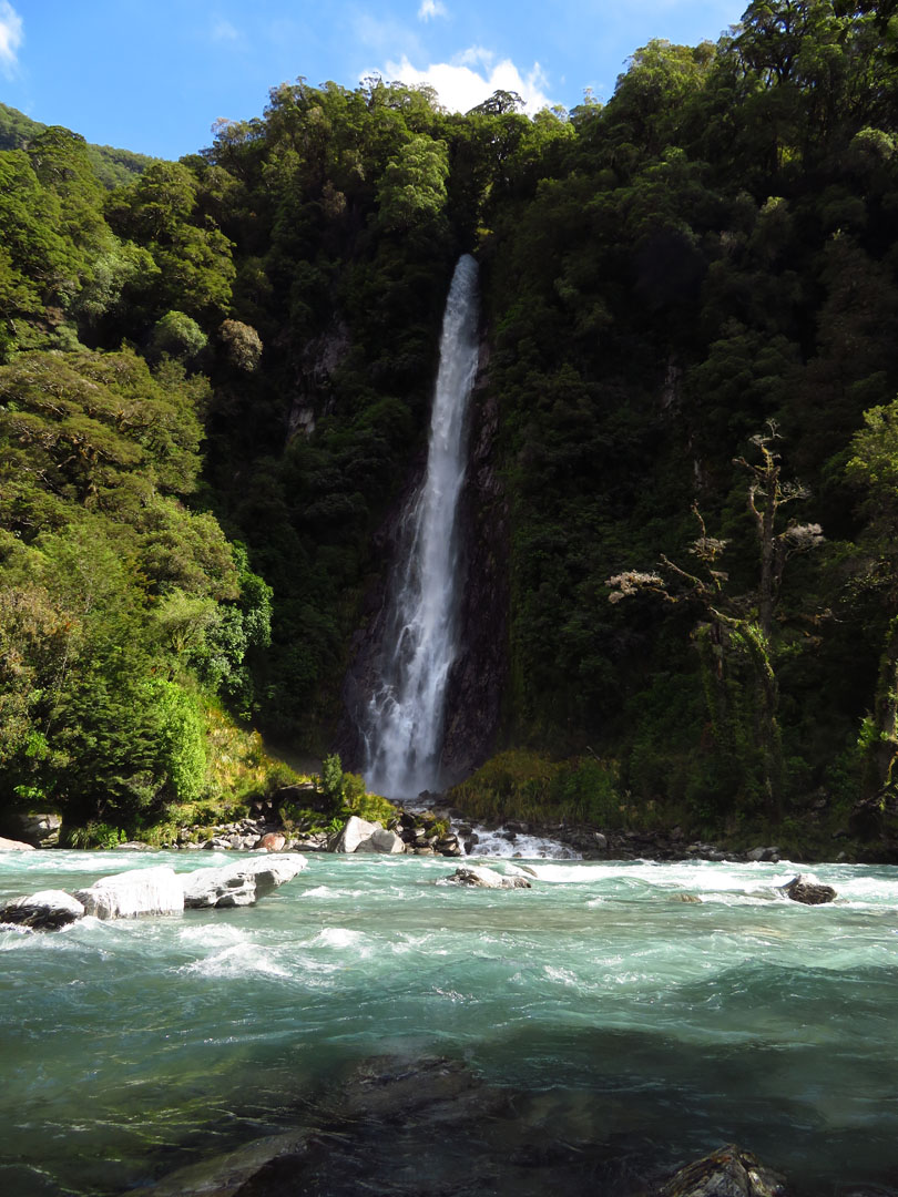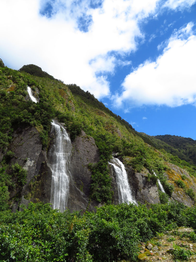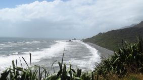 Diesmal kehrten wir Queenstown wirklich den Rücken und fuhren wieder hoch nach Wanaka, denn von dort aus sollte unsere Route weiter gehen. Unterwegs hielten wir an einem Lookout, wo ein weites Tal mit durchwachsenem Wetter ein tolles Bild bot, und machten schließlich ein weiteres Mal auf unserem Campingplatz direkt am See Station. Den folgenden, sonnigen Morgen begannen wir dann tatsächlich erst einmal mit einem Bad- einem ziemlich kurzen Bad, zugegeben, denn das Wasser war eisekalt, aber wunderbar klar! Die Route sah vor, in den nächsten Tagen über die Westküste bis zu den Gletschern zu fahren. Mal bei schönstem Wetter, wie an jenem Morgen, dann aber auch wieder bei Nebel und Sprühregen, fuhren wir durch eine abwechslungsreiche Landschaft. Entlang des Lake Wanaka boten sich wieder schönste See-Panoramen, wir liefen durch neblige Baumfarnwälder und bestaunten Wasserfälle, klare Flüsschen und tolle Aussichtspunkte. Schließlich fuhren wir wieder am Wasser entlang- die raue Westküste bot Kieselstrände mit wilder Brandung und steile Klippen und war letztlich gar nicht weit entfernt von den Alpen, wo sich schneebedeckte Gipfel erhoben und der Fox- und Franz-Josef-Gletscher auf uns warteten.