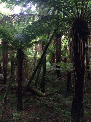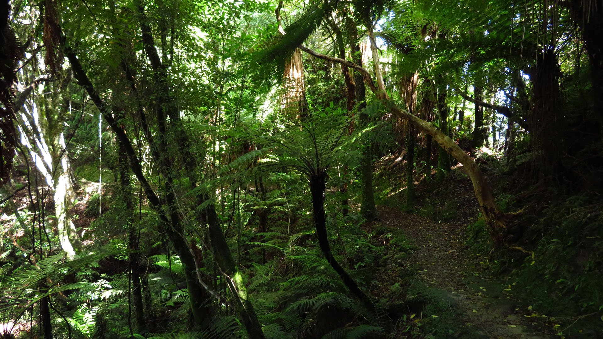 Auf dem weiteren Weg die Westküste gen Norden machten wir in der folgenden Nacht in Hokitika Station, auf einem Campingplatz, der etwas ganz besonderes gleich nebenan hatte: die sogenannte Glowworm Dell. Hier führte ein Weg ein kurzes Stück in ein schattiges Waldstück hinein, und endete in einem Halbrund von be- und überwachsenen Felswänden. Tagsüber nicht sonderlich spektakulär, im Dunkeln allerdings ein geradezu zauberhafter Anblick! Aus abertausenden kleinen Punkten spannt sich ein grün phosphoreszierender Sternenhimmel dort auf, wo bei Tag die Felsen sind. Nach den eher spärlich gesäten Glühwürmchen in der Clifden-Höhle war dies das erste Mal, dass ich sie in so großer Zahl sah, und ich war entsprechend beeindruckt – faszinierendes Neuseeland!