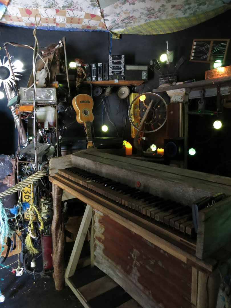 Auf diese Weise nahmen wir manchen Wasserfall oder kleinen Spaziergang durch einen urigen Wald oder zu einem hübschen See mit, aber wir wurden auch auf kleine Highlights aufmerksam, die wir wohl sonst nie beachtet hätten. Eines davon war „The Lost Gypsy Caravan“, eine Mischung aus Museum, Werkstatt und Cafe. Ein Künstler hat hier etwas geschaffen, was das Kind in jedem von uns wecken dürfte. Aus allen möglichen, teilweise ganz schön alten Alltagsgegenständen, Schrott und altem Spielzeug entstanden unzählige interaktive Spiele, Automaten und bewegte Kunstwerke mit Knöpfchen, Kurbeln und Lämpchen. Der erste Raum war ein alter Bus und dort wusste man gar nicht wo man hingucken sollte, denn in jeder Richtung gab es etwas zu entdecken. Ich musste unweigerlich an Peter Lustig denken, und wir verbrachten durchaus eine Weile damit, das ganze Museum zu erkunden. Eines der aufwändigsten Kunstwerte war ein Raum, in dem ein altes Klavier stand, und jede Taste etwas anderes in Gang setzte, das sich dahinter befand- sei dies ein alter Plattenspieler, eine sprechende Puppe oder ein klapperndes Gebiss.