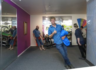 In Wanaka hatten wir einen schönen Campingplatz direkt am See, doch leider hatte es sich unterdessen schon wieder ganz schön zugezogen und der nächste Tag wurde trüb und regnerisch. Vom Timing hätte es allerdings schlechter laufen können, denn wir besuchten eine Indoor-Attraktion: die „Puzzling World Wanaka“. Hier drehte sich alles um Illusionen, optische Täuschungen und Geduldsspiele. So gab es zum Beispiel einen Raum der zwar in sich normal, aber als Ganzes gekippt war, was ein ziemlich eigenartiges Gefühl war! Dinge rollten bergauf und man stand völlig schief wenn man grade stand…