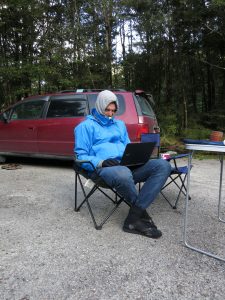 Die Nacht verbrachten wir auf einem kostenlosen Campingplatz am See, der wunderschön hätte sein können, wenn es nicht in Strömen geregnet hätte. Ohne Möglichkeit, das Auto zu verlassen kann es schon etwas nervig werden, wenn man alles Gepäck, was während der Fahrt auf dem Bett liegt, auf die Sitze, auf denen man aktuell sitzt, räumen muss, um schlafen zu können. Kochen ist dann natürlich auch nicht, und so bleibt im Grunde genommen nur der Griff zur Jim Beam Flasche- ein Glück, dass ich das Duty Free Limit ausgeschöpft hatte…