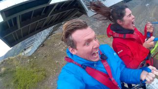 What a ride!! Definitiv eines der geilsten Dinge, die ich je gemacht habe! Der senkrechte Fall nach unten wurde durch die Seile schließlich smooth in eine Schwingbewegung umgeleitet und wir rauschten dicht über dem Hang dahin. Auf Adrenalin und Endorphinen schaukelten wir aus, und uns war klar: das müssen wir nochmal machen! Glücklicherweise gab es tatsächlich die Option, für weitere 40$ pro Person eine zweite Runde mitzunehmen! Verglichen mit den 175$, die wir jeweils schon hingelegt hatten geradezu ein Spottpreis…! Also nochmal – diesmal rückwärts! Im folgenden Video habe ich mal die besten Momente aus unserem selbstgefilmten Material zusammengeschnitten: