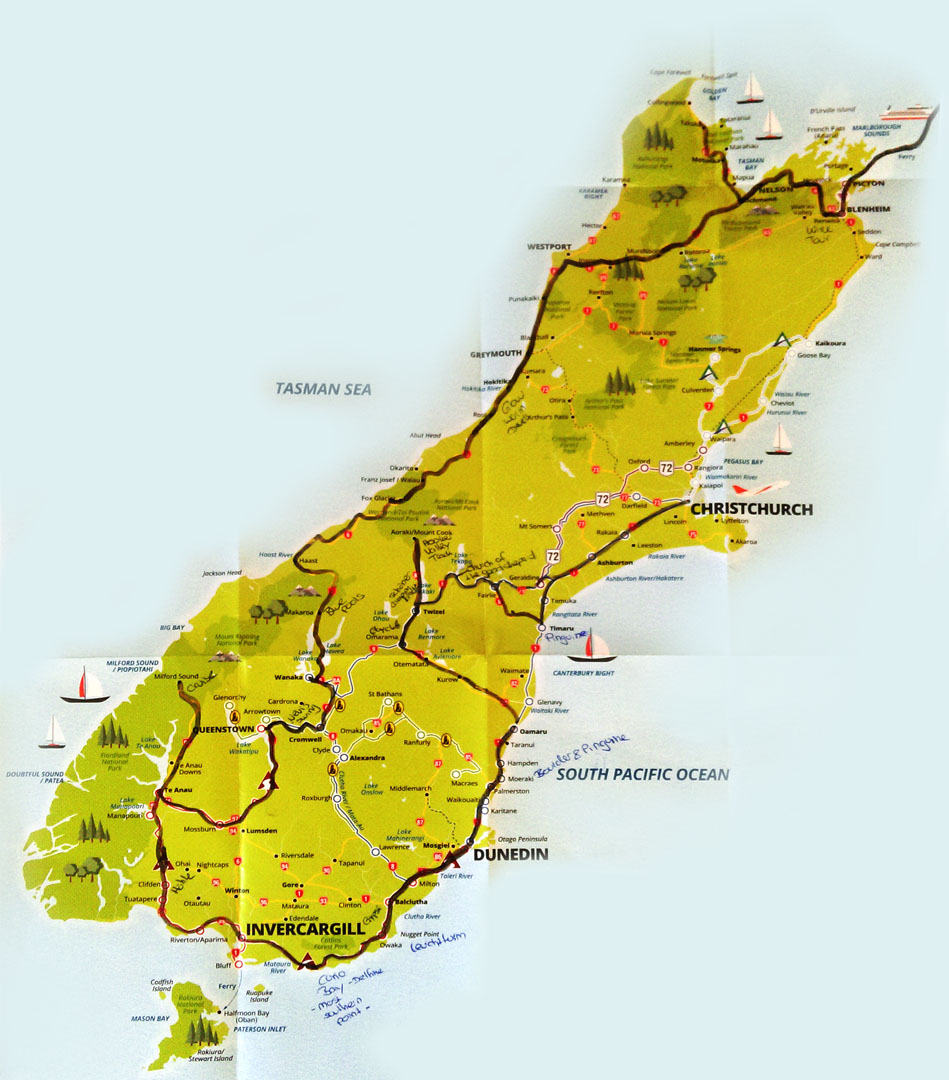 In den folgenden sechs Wochen wollten wir zunächst – mit Abstechern ins Inland – von Christchurch aus die Ostküste der Südinsel herunterfahren, durch die Berge und dann an der Westküste wieder ans Nordende der Insel zurück. Von Picton aus würde es mit der Fähre auf die Nordinsel gehen, wo wir uns von Wellington aus in den Norden vorarbeiten würden, um dann schließlich bis nach Cape Reinga, dem Nördlichsten Zipfel Neuseelands zu fahren.