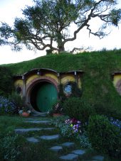 Wie bereits erwähnt, wurde in Neuseeland der „Herr der Ringe“ gedreht, und überdies der Dreiteiler zum Buch „Der Hobbit“. Viele Szenerien kann man allein dadurch wiedererkennen, dass man dieses Land bereist, andere sind eine explizite Touristenattraktion. Der „Herr der Ringe“ hat Neuseeland sicherlich zu weiterer Popularität als Reiseland verholfen, einem Mann hat er jedoch ein ganz besonderes Geschenk gemacht. Russel Alexander, Schafsfarmer in der Gegend von Matamata hatte auf seiner Farm in den Augen des Regisseurs Peter Jackson den Idealen Landstrich um das Filmset zum Auenland, der Heimat der Hobbits, zu erschaffen. Während für die ersten Filme noch alles aus Pappmaschee gebaut war, und nach Abschluss der Dreharbeiten zügig verfiel, hatte Alexander als die Filmcrews für den „Hobbit“ wiederkamen die Zeichen der Zeit erkannt und mit dem Studio einen Deal gemacht. „Hobbiton“ sollte diesmal dauerhaft wiederauferstehen und in eine höchst profitable Touristenattraktion verwandelt werden, denn nach dem der „Herr der Ringe“ abgedreht war fanden bald Scharen von Fans den Weg auf seine Farm, um einen Blick auf das zu erhaschen, was vom Set noch übrig war. Ein Blick auf sein ausgesprochen zufriedenes Gesicht im Introvideo, welches im Shuttlebus vom Parkplatz zum eigentlichen Set abgespielt wird, verrät: das hat sich gelohnt! Man munkelt, dass er in etwa Halbe-Halbe mit dem Studio macht, bei ca. 3000 Besuchern pro Tag und runden 80 Dollar Eintritt dürfte das wohl aber verschmerzbar sein…