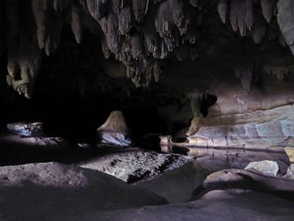 Gleich Montagmorgen suchten wir also einen Reifenservice auf, und erstanden einen gebrauchten Reifen- die eine Woche würde der schon noch halten! Beschwingt und ‚wieder im Rennen‘, suchten wir erst einmal die Höhle auf, welche in der Tat toll war! Eine Menge Glühwürmchen waren bereits in der ersten Höhle zu sehen, doch wenn man einige Meter gebückt unter einer niedrigen Decke am/durchs Wasser ging, gelangte man in eine noch größere Höhle, die noch schöner leuchtete. Im Wasser gab es übrigens angeblich Aale, die zwar prinzipiell ungefährlich sind, wohl aber auch mal zuschnappen können… ich habe zwar keine gesehen, doch es verlieh dem ganzen doch einen besondere Charme, wenn man so im Licht der Taschenlampe mit Sandalen durch das düstere Wasser watete…
