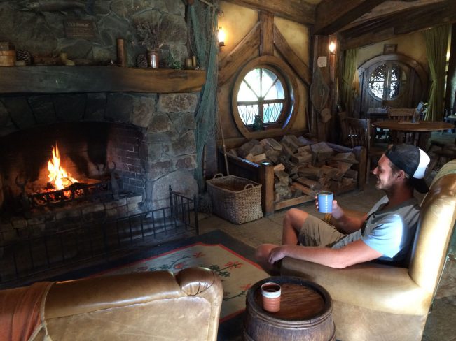 Christina war bereits dort gewesen, und letztlich nur mäßig enthusiastisch, da es eine ziemliche Massenabfertigung war, also würde ich alleine gehen. Allerdings konnte ich von einem Tipp profitieren, den sie während ihrer eigenen Tour erhalten hatte: buch die erste oder die letzte Führung. Ich entschied mich für die Letzte (…logo!…), und war so in der komfortablen Situation, das keine weitere, der sonst alle Viertelstunde startenden Touren mehr nach uns kam, die uns ansonsten an jedem Foto-Spot im Nacken sitzen würde. Stattdessen konnten wir ganz entspannt im Licht des späten Nachmittags zwischen den liebevoll gestalteten Hobbit-Häusern (oder Hobbit-Holes, wie man wohl korrekterweise sagt) hin und her flanieren und zusehen, wie es immer leerer wurde. Zum Abschluss gab es im Hobbit-Gasthaus „Green Dragon“ noch ein kühles Bier, und auch wenn 80 Dollar freilich ridiculously overpriced sind, um einmal durch ein Filmset zu schlendern, muss ich wirklich sagen, es war ein tolles Erlebnis und der Ausflug hat sich auf jeden Fall gelohnt!
