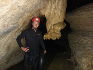 Zwar hatten wir Höhlen und Glühwürmchen sowohl einzeln als auch in Kombination bereits gesehen, dennoch reizte mich der Besuch der Waitomo Caves, die als DIE Glühwürmchenhöhlen schlechthin angepriesen wurden. Überdies war bei Bookme ein guter Deal drin, daher machten wir noch mal einen Abstecher Richtung Westen, und ich ging auf „Cave-Tubing“-Tour! Hierbei bekommt man einen Neoprenanzug und einen Schwimmring und steigt mit einem Guide in die Höhle hinab. Ab hier gingen Erwartung und tatsächliches Event doch deutlich auseinander! Ich war irgendwie auf unterirdische Wildwasserfahrt gepolt, schließlich wurden solche Unternehmungen auch gern mal als „Blackwater Rafting“ angepriesen… Im Endeffekt wurde man jedoch gemütlich durch kaum merklich fließendes Wasser gezogen. Das Ganze hatte durchaus seinen Reiz, denn die Höhlendecke war häufig über und über besetzt mit Glühwürmchen, so dass man in deren Licht zumindest den Schatten seiner Hand erahnen konnte! Wäre das meine erste Glühwürmchenhöhle gewesen – hätte es mich wahrscheinlich total geflasht, so allerdings kam die Erfahrung irgendwie nicht über das Prädikat „schon schön“ hinaus.