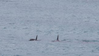 Die Überfahrt war dementsprechend eher unspektakulär, nur einmal gab es etwas wirklich Spannendes zu sehen, und darauf wurde dann sogar per Durchsage aufmerksam gemacht: Orcas! Zwar gab es keine Kunststücke wie im Seaworld zu sehen, aber die markanten Rückenflossen tauchten für eine Weile immer mal wieder neben der Fähre auf.