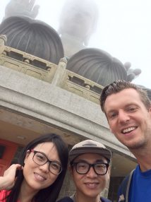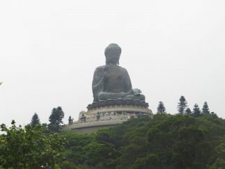 Für den nächsten Tag hatten wir uns vorgenommen, zur „Big Buddha Statue“ außerhalb der Stadt zu fahren, wobei uns 顏小明, eine von Desmonds Freundinnen, begleitete. Leider hatte die Seilbahn, mit der man sonst eine tolle Panoramafahrt bis zur Statue machen kann geschlossen, daher mussten wir den Bus nehmen. Wiederum natürlich nicht alleine, aber trotz der absurden Länge der Schlange kamen wir zügig voran, da sowas hier eben gut organisiert war, und alle paar Minuten ein neuer Bus kam.