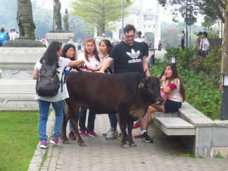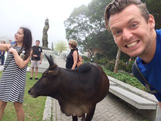 In der Nähe der Imbiss-Stände lungern auch ein paar wohl-genährte Kühe rum, die zwar geduldig für Selfies zur Verfügung stehen, dafür aber auch unachtsamen Touristen gerne mal die frisch-gekauften Snacks abnehmen.