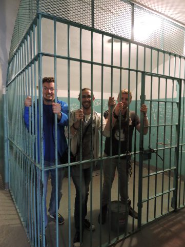 Mein grob gefasster Plan sah vor, dass ich mich nach den drei Nächten in Montreal Richtung Quebec City begebe und schließlich am 19.7. von Toronto nach Vancouver fliege (den Flug hatte ich von Deutschland aus bereits gekauft). Genaueres war unklar und ich daher offen für gute Ideen! Im Hostel lernte ich die beiden Franzosen Arnaud und Franck kennen, die mir anboten, sie auf ihrer Tour nach Trois-Rivierères –Tadoussac-Quebec City zu begleiten. Sie hatten einen Mietwagen und ein Chalet, also so eine Art Blockhaus, an einem See bei Tadoussac gemietet. Letzteres für vier Tage und insbesondere dafür suchten sie noch jemanden um die Kosten zu teilen und weil das zu dritt lustiger ist als zu zweit. Auch wenn das meine Planung für Toronto ganz schön stauchen würde fand ich die Idee gut- ein paar Tage am See chillen, das war eigentlich genau das Richtige! In Trois-Rivierères waren wir drei Nächte, was definitiv zu lang war, denn hier gab es eigentlich nicht besonders viel zu sehen. Highlight war der Besuch des örtlichen Gefängnis-Museums, wo einen Ex-Knackies durch die Räumlichkeiten führen und dem ganzen eine persönliche Note verleihen. Das war durchaus spannend- bzw hätte spannend sein können, hätte ich nicht von jedem Abschnitt der Tour lediglich nur die gröbsten Zusammenhänge verstanden- der gute Mann sprach tiefstes Quebecois! Die Têtes à claques sind nichts dagegen! Arnaud hatte wenig Probleme, da er sich durch eine Freundin (Kim), die von hier kam, und die wir zum geocachen und Essen trafen, bereits gut reingehört hatte, aber es war beruhigend zu sehen, dass selbst Franck manchmal ratlos die Augenbrauen hochzog. Die beiden gaben mir unterwegs immer eine kleine „Simultanübersetzung“ und manches hab ich mir hinterher in Ruhe erklären lassen. Überhaupt bedeutete die Reise mit den beiden für mich natürlich, mich nochmal richtig reinzudenken ins Französische, was zwangsläufig auch ganz schön ermüdend, in jedem Fall aber ein Gewinn ist!