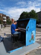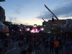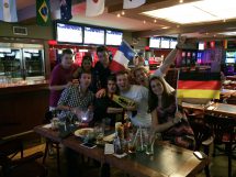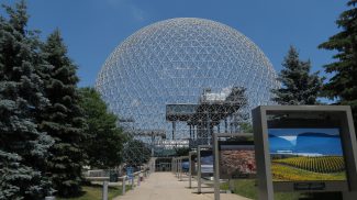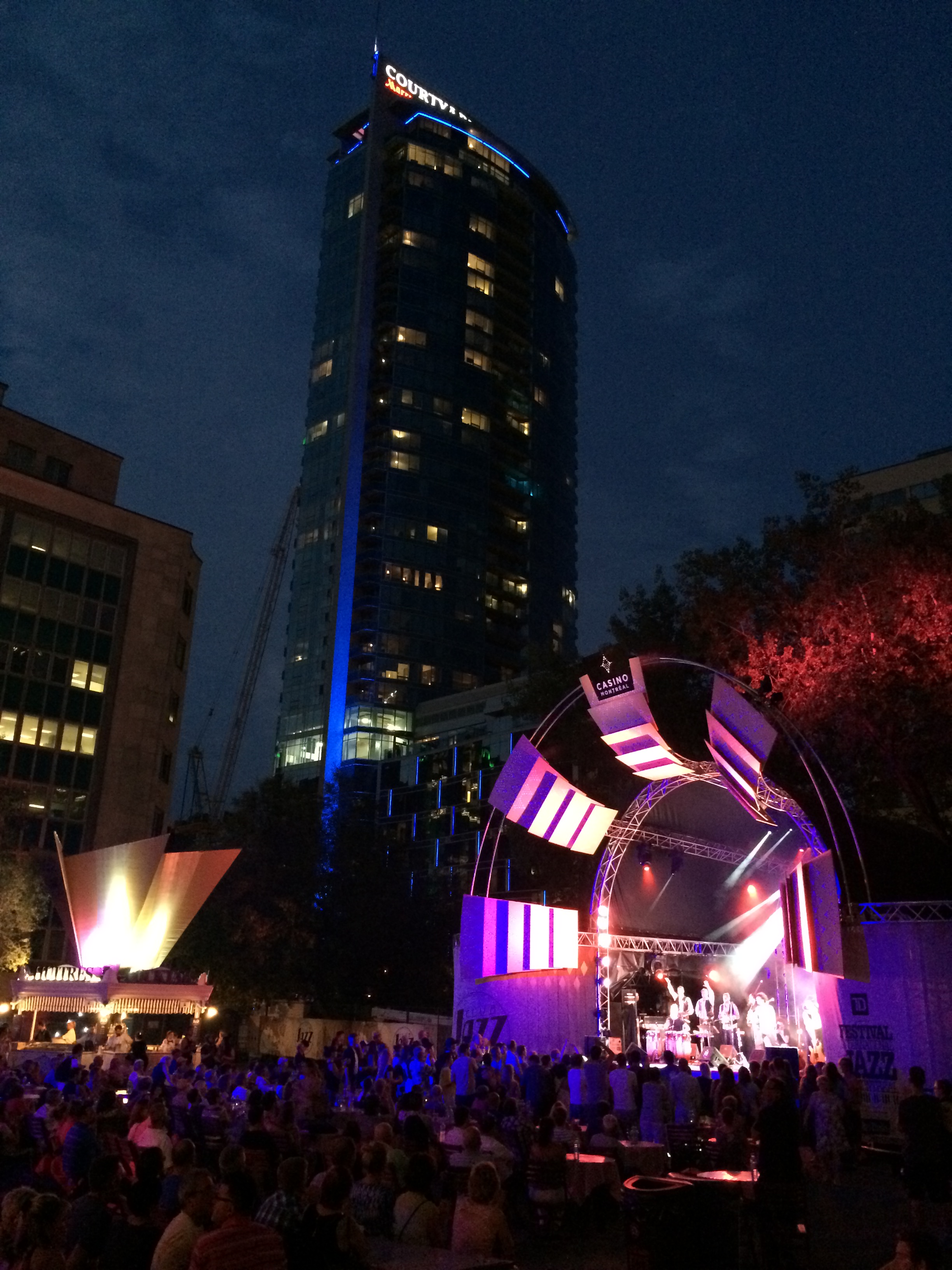 Die drei Tage, die ich hier hatte waren natürlich viel zu kurz um alles zu sehen! Neben einer Reihe von Museen und architektonischen Sehenswürdigkeiten gibt es große Anlagen von alten Großereignissen, wie der Weltausstellung 67, für die extra eine Insel im St.Lorenz Strom aufgeschüttet wurde, und den Olympiapark. Beides habe ich mir angesehen. Im Olympiapark gibt es auch ein Planetarium- recht neu und mit viel Aufwand installiert- das habe ich mir natürlich nicht entgehen lassen und es war ein gutes Mittagsprogramm vor dem EM Halbfinalspiel gegen Frankreich, welches hier aufgrund der Zeitverschiebung schon um 15 Uhr übertragen wurde. In der Metro  hatte ich einen Mann im Deutschlandtrikot angehauen, allerdings war es kein Deutscher, sondern ein fußballverrückter Kanadier… von dem erfuhr ich, der „ Place to be“ um das Spiel zu gucken sei die ‚Station de Sport‘ im Village, dem Gay-Viertel von Montreal. Ausgerüstet mit meinem Deutschland-Bandana musste ich zunächst an der Tür der riesigen Sportsbar warten, denn es war schon eine ganze Menge los. Bedauerlicherweise – wenn auch wenig überraschend- waren 99 % der Zuschauer Franzosen. Das einzige Mädel im Deutschlandtrikot, das ich auftreiben konnte war zudem auch noch eine halbspanische Quebecerin, die halt zu Deutschland hielt, ihre Freundin jedoch zu Frankreich. Nach dem desaströsen Spiel war der Jubel in dem Laden entsprechend groß, und ein paar junge Franzosen kamen gönnerhaft zu uns für ein Shakehands und ein Bierchen. Alles in allem war es dennoch ein lustiger Nachmittag, wozu auch die zwei Kannen Sangria beigetragen haben dürften, die wir uns unterdessen genehmigt hatten. Um den angebrochenen Abend nicht verkommen zu lassen, sind wir (nach einem kleinen Rundgang durchs Village) also weiter zum ‚Festival de Jazz‘, einem großen Open Air Spektakel, dass sich derzeit in Montreal abspielte und wo auf mehreren Open Air Bühnen mehr oder weniger jazzige Livemusik geboten wird. Tolle Sache! Quasi ein ganzes Viertel ist abgesperrt und drumherum die Kulisse der Stadt… das war wirklich schön! (Wie ich einige Tage später erfuhr, gab es einen Zwischenfall, wo jemand versucht hat eine Bombe auf das Gelände zu schmuggeln. Glücklicherweise wurde das bei der Kontrolle bemerkt und niemand wurde verletzt!)