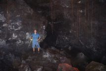 Ein Highlight war definitiv unsere Höhlen-Expedition in den Kaumana Caves, einer alten Lava-Tube. In solchen Höhlen war die Lava in Form einer Röhre erkaltet, die dann gleichsam leergelaufen ist, so dass sich ein langer Tunnel gebildet hatte. Vom Einstieg aus konnte man in zwei Richtungen laufen- hügelabwärts war der Weg relativ schnell zu Ende. Insgesamt war es auch ziemlich dunkel, da unbeleuchtet, und meine Stirnlampe musste sich irgendwie entladen haben und funktionierte nicht. Daher blieb unsere einzige Lichtquelle die Taschenlampenfunktion meines Handys, weswegen wir uns zunächst nur zögernd vorwagten. Als wir in die zweite Höhle einstiegen, machte sich auch eine gut ausgeleuchtete Truppe junger Wanderer auf den Weg ins schwarze Dunkel und da hängten wir uns einfach mal dran, da wir annahmen, so tief könne die Höhle ja nicht sein. Irrtum! Hinter einem recht engen Spalt öffnete sich die Tube wieder zu voller Breite und zog hügelaufwärts. Manchmal über große Blöcke, manchmal neben einem Bach und schließlich bergan durch denselben ging es immer tiefer in die Höhle. Unsere Mitstreiter waren- nicht zuletzt durch die bessere Beleuchtungssituation- zügiger unterwegs, und der Abstand vergrößerte sich zusehends. Daher entschlossen wir uns schließlich, unsere Expedition doch besser abzubrechen und uns im fahlen Schein der Handyfunzel wieder zurück zu tasten. Mehr als einmal stellten wir uns mit Grausen vor wie schrecklich es sein müsse im stockfinstern zwischen scharfen Felsen in dieser Höhle zu stranden, sollte das Lämpchen plötzlich versagen. Schließlich hatte das Tageslicht uns wieder, und wir waren begeistert von der gelungenen Erkundung.