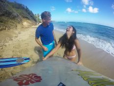 Auch eine Runde surfen durfte natürlich nicht fehlen. Mit etwas Geschick bekamen wir zwei ihrer Bretter ins Auto und gingen unterhalb des Diamond Heads eine Runde aufs Wasser. Allerdings war ihr größtes Brett für mich als wenig routinierten Surfer immer noch viel zu klein, so dass sich die Erfolgserlebnisse in Grenzen hielten… Eine spaßige Aktion war es aber auf jeden Fall!