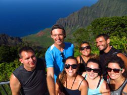 Mit der Propellermaschine von Island Air ging es nun also vom einen Ende des Archipels zum anderen- von der jüngsten, vulkanisch noch aktiven Insel zur ältesten und dem entsprechend auch am weitesten erodierten Insel: Kaua’i. Wind und Wetter haben tiefe Schluchten und Täler in Kaua’is Vulkan gegraben und große Teile der Insel sind grün und üppig bewachsen. Angekommen am Flughafen von Lihu’e wurden wir von bestem Wetter begrüßt- wie hatten wir das vermisst, nach den nassen Tagen in Hilo! Obwohl wir die billigste Klasse gebucht hatten war unser Mietwagen angenehm geräumig und wir machten uns erst mal auf den Weg zum Hostel in Kapaa an der Westküste der Insel. Dort angekommen gab es gleich mal ein großes Hallo, denn sowohl ein Pärchen aus Québec als auch eine Schweizerin, die ich allesamt von Maui kannte, waren bereits dort.