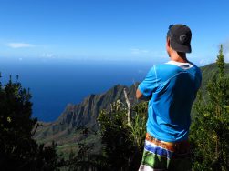 Ich war an diesem Ort schon einmal- 2007. Auch damals war ich fasziniert und habe das Tal seitdem als einen der beeindruckendsten Orte in ganz Hawai’i in Erinnerung. Und auch dieses Mal, neun Jahre danach, hatte es mich wieder echt gepackt! Staunend lief ich den lehmigen Pfad entlang, von dem sich rechts die Hochebene der Alakai Swamps erstreckte und links das Kalalau Valley steil in die Tiefe abfiel. Immer wieder blieb ich stehen und saugte die Szenerie in mich auf. Dafür war ich hier, das ist es, was Hawai’i für mich ausmacht und ich wusste, dies würde eine Landmarke sein, auf meiner Reise um die Welt. Einer der Momente, wo alles genau so war, wie es sein sollte, wo Erwartung und Erfahrung deckungsgleich sind. Ladys and Gentlemen: Das Kalalau Valley: